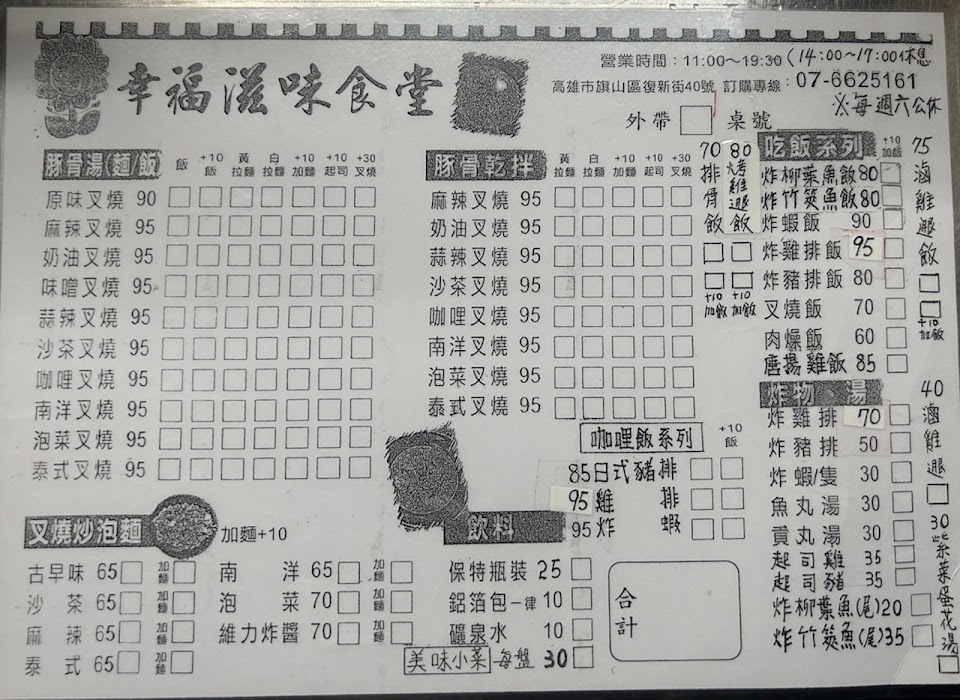 “幸福滋味食堂”業主提醒,沒有這餐點,才發現我說的是高樹鄉( 幸福湯), 不是幸福滋味食堂, 抱歉! 店名都有“ 幸福”, 且巧的是上星期才剛去買,沒注意到店名~ 哈!