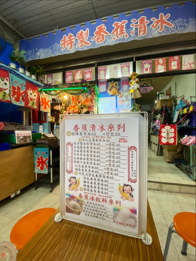 香蕉清冰很消暑~ 香蕉冰紅茶也不錯喝~ 但環境不是很舒適,放的音樂大聲又難聽,建議可以買了就走不用內用