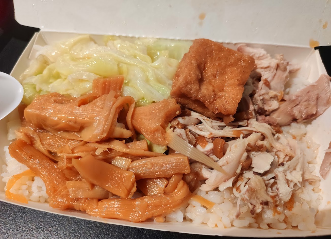 說重點 店家調味好,古早味鹹甜的醬汁配上筍乾高麗菜豆腐等(他的醬救了所有一切 不過我不會為這樣的份量和質量買單,雞肉飯趕緊跑?♀️