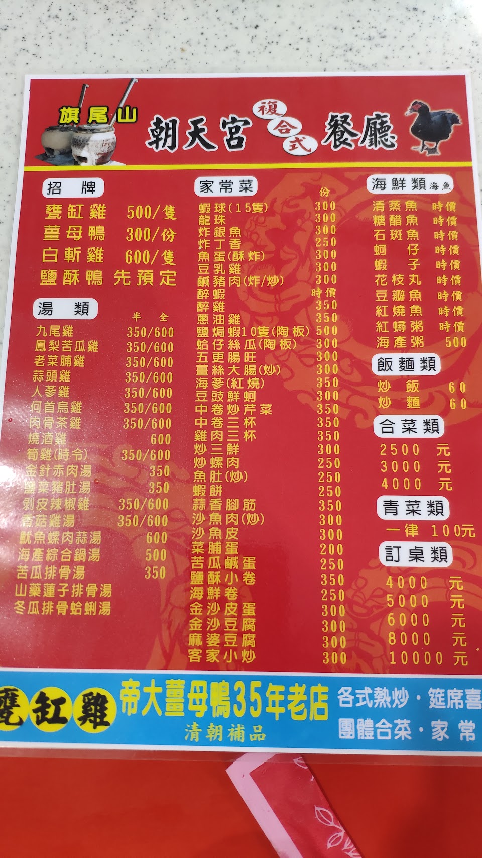 合菜5000,烤全雞,蒸魚,蝦子,干貝,薑母…等,CP值算高⋯⋯
