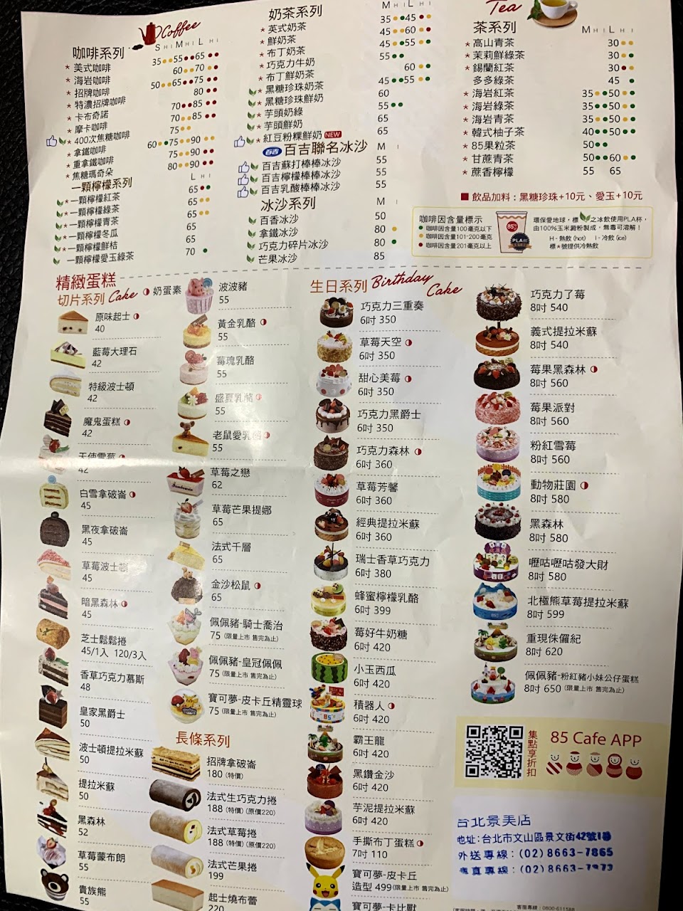 2024最新在地推薦餐廳的菜單_85度C 咖啡蛋糕麵包店-台北景美店的菜單、圖片