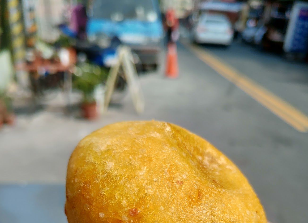 蕃薯椪外脆內軟Q,雖然很燙還是熱熱吃最美味,然後私心希望裡面的餡再多一點就更完美了~ 店家很親切? …