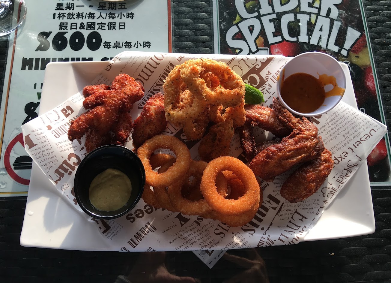 我推薦雞肉薄餅和綜合拼盤,超級好吃,口感酥脆,