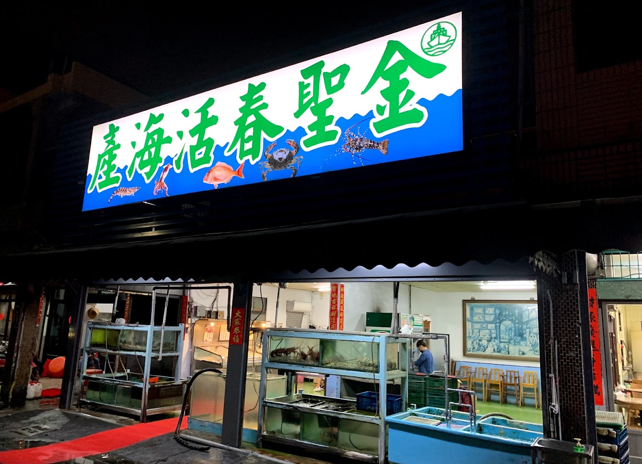 旗津中洲渡輪站附近的 “金聖春活海產” 是高雄旗津老字號的海產店之一,