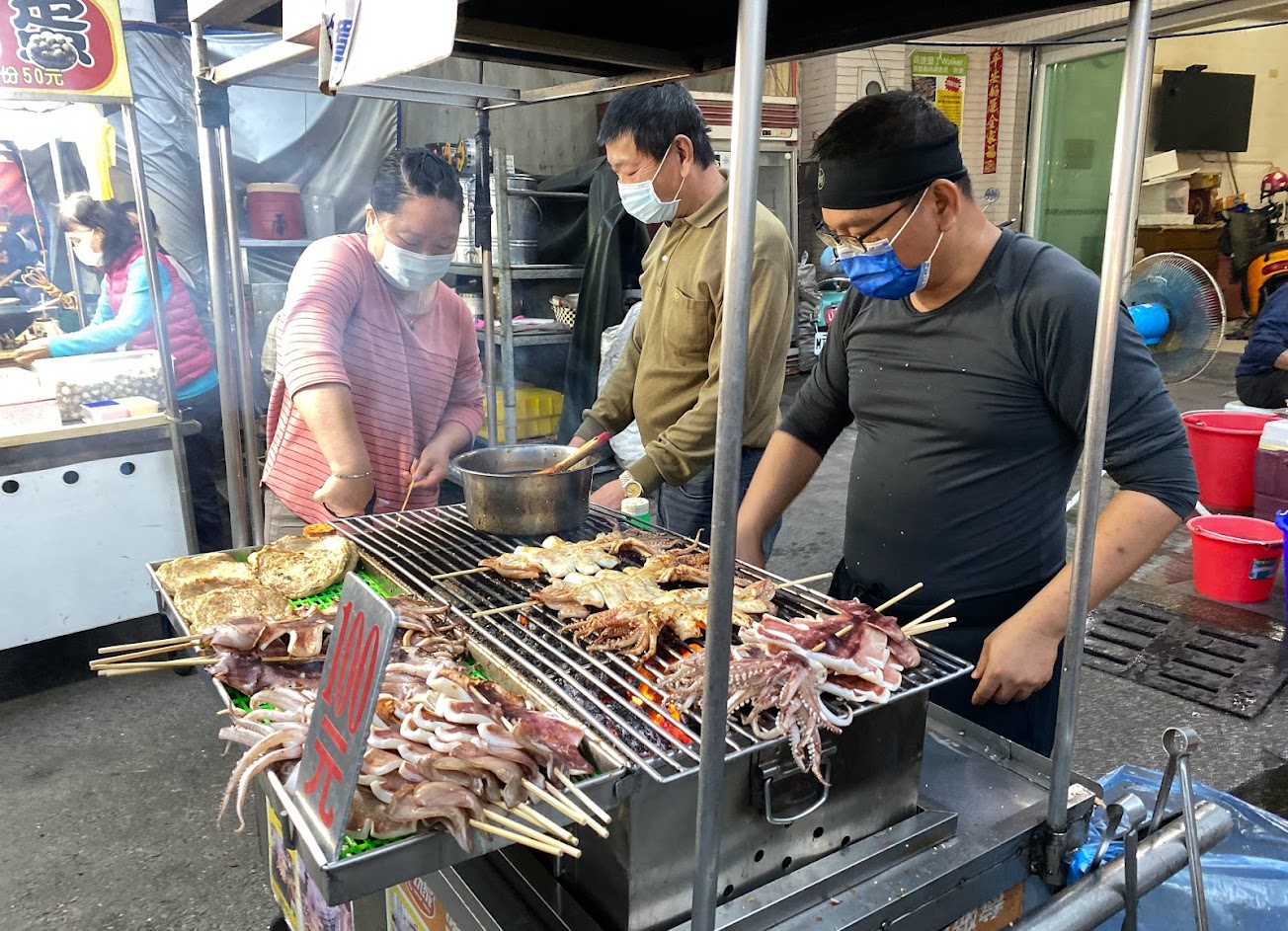 小隻90大隻100,魷魚頭有生生的感覺,醬不喜歡,黑輪20,人不多,老闆趕時間隨便烤的感覺