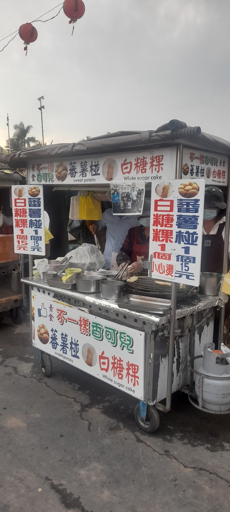 在烤小卷攤旁邊。感覺蕃薯椪其實也還好而已,但白糖粿倒是還滿不錯,跟印像中以前小時候吃過的差不多。買過幾次,熱的時候好吃。冷掉了也還好,不會有奇怪的油味。