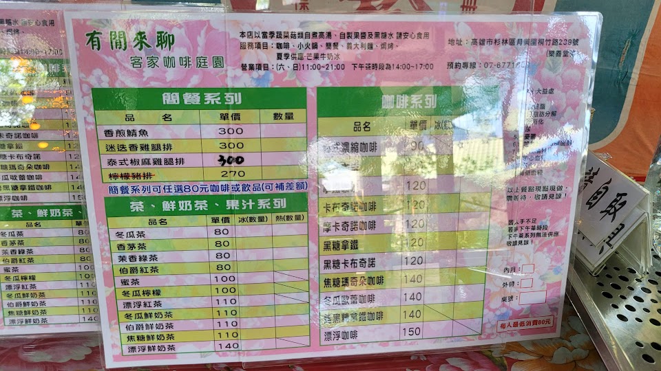 2024最新在地推薦餐廳的菜單_杉林區 有閒來聊 客家咖啡 庭園的菜單、圖片