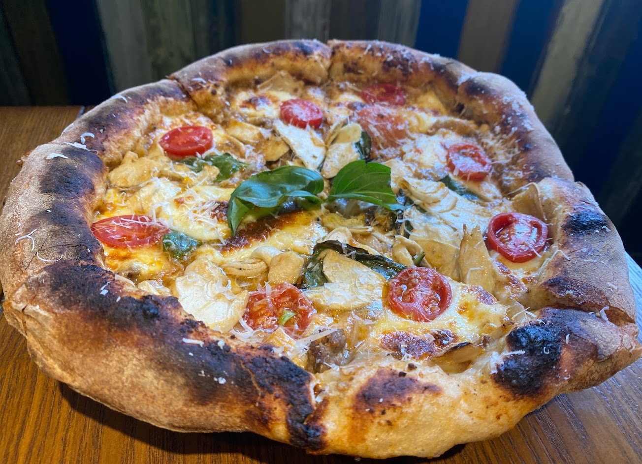 一個人吃掉半個。已盡力?現點現烤,滿滿野菇和起司,但豬肉有點零星稀疏。 …