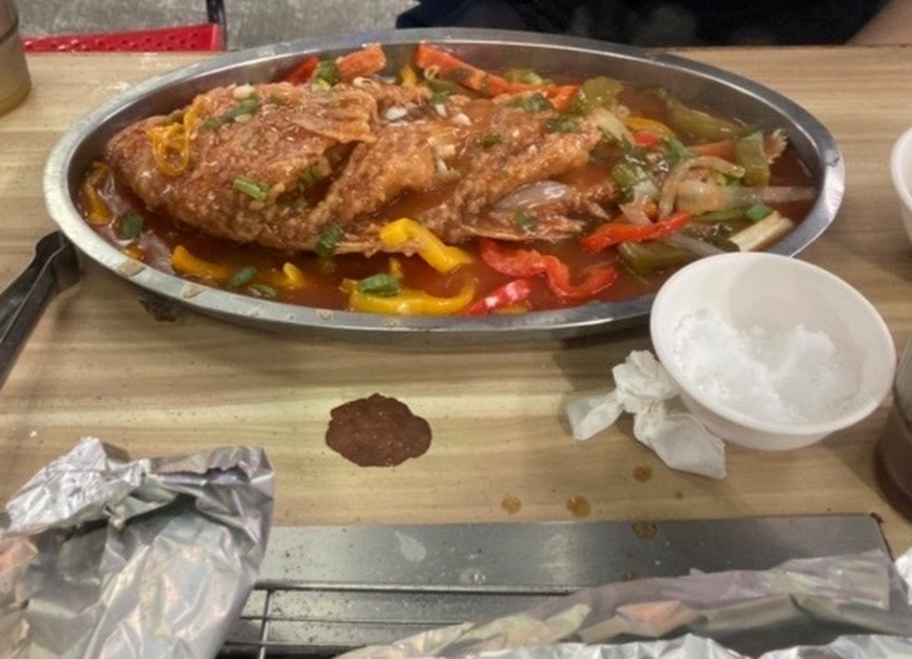 特地從台中來嚐鮮!謝謝熱情的少年老闆招待小卷麵線與好大一尾新鮮的清蒸鯧魚。沖著吃到飽的鮮蚵而來,果然名不虛傳,CP值超高!喜歡傳統戶外炭烤的朋友們有福了!大推!