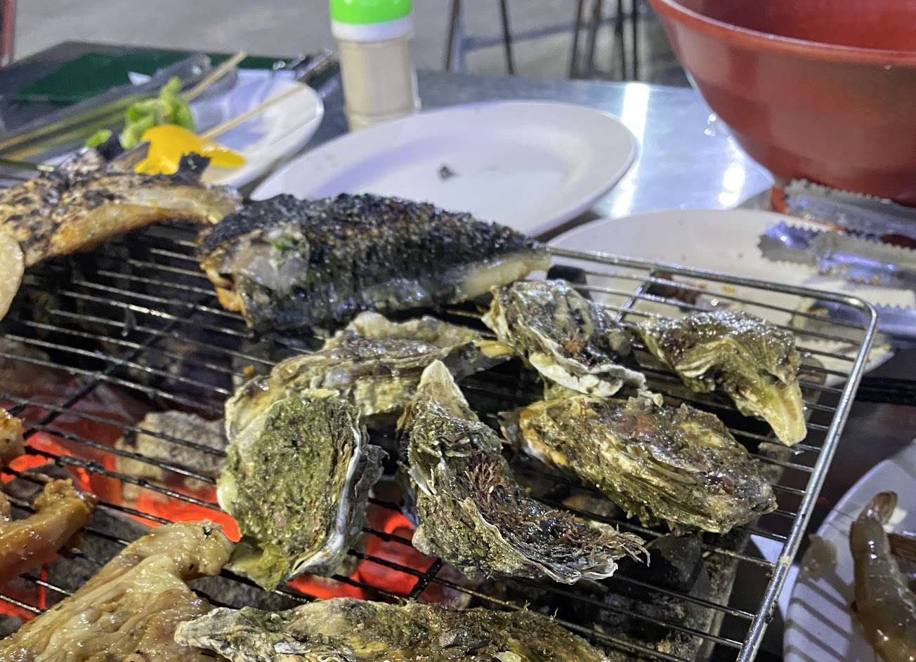 炭火版的第一名燒烤,但是海鮮類真的是很豐盛又新鮮,牡蠣吃到飽還有小卷米粉跟清蒸鮮魚就值回票價