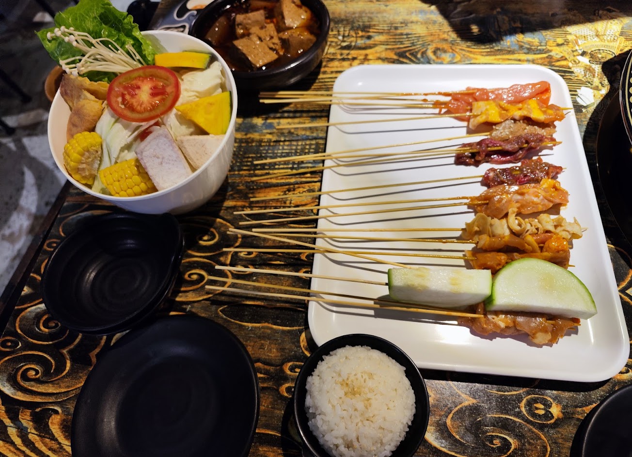 看評價好像很雷,實際吃過以後覺得湯頭很厲害!白湯很濃郁有認真熬煮~另一鍋是青花椒,麻但是不辣香氣很夠,但是單點麻辣鍋的才會有一份鴨血豆腐其它就沒有~想要吃飽的就是直接點人頭160的方案~直接點肉盤加白飯就好啦!跟cp值沒關係,串串只是一個好玩新鮮感,總體來說肉跟食材都很好吃的!
