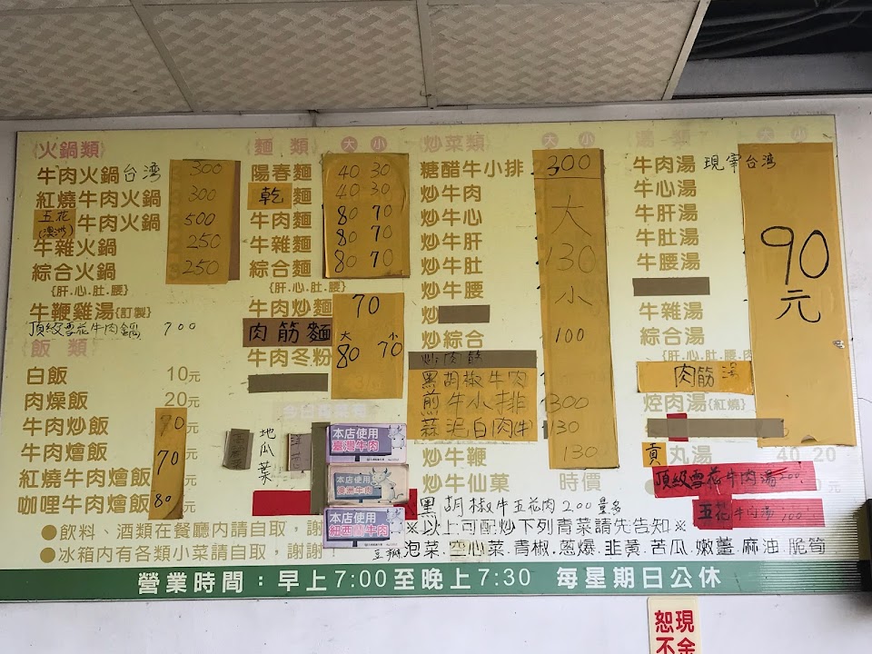 開了很多年的店有一定的客群,牛肉湯底是清爽的九層塔口味,沒有牛腥味,牛肉給的滿多的蠻有誠意,牛肉躁飯很香很好吃,還有附酸菜很解膩,牛油香很讚,大推!豬肉燥比較普通但也是好吃的,牛雜湯料多口感很好,老闆跟店員都很和善,還附上醬油醃的大蒜可以配著吃,值得回訪的店?? …