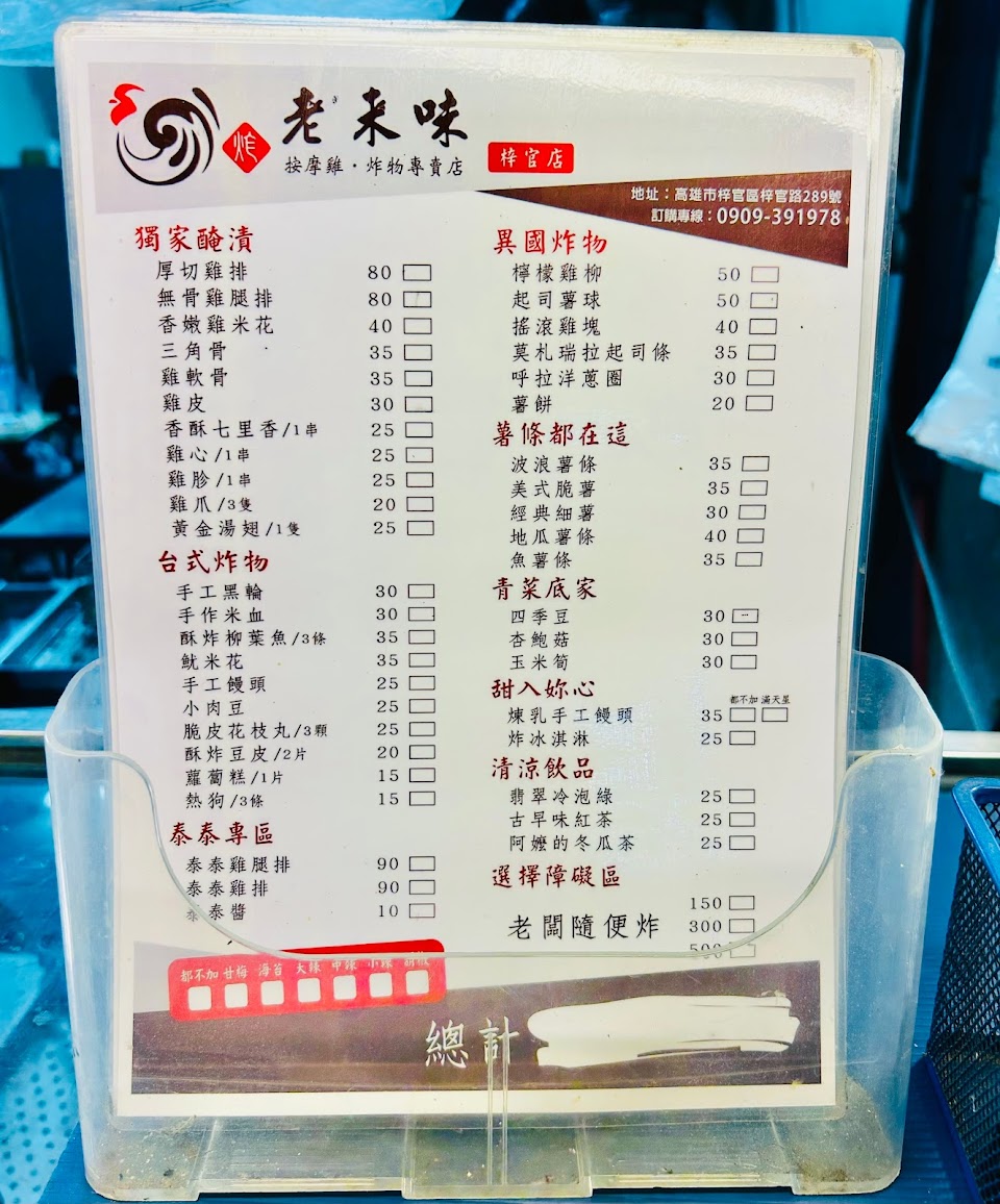 2024最新在地推薦餐廳的菜單_老來味炸物專賣-梓官店(原十九甲雞排)的菜單、圖片