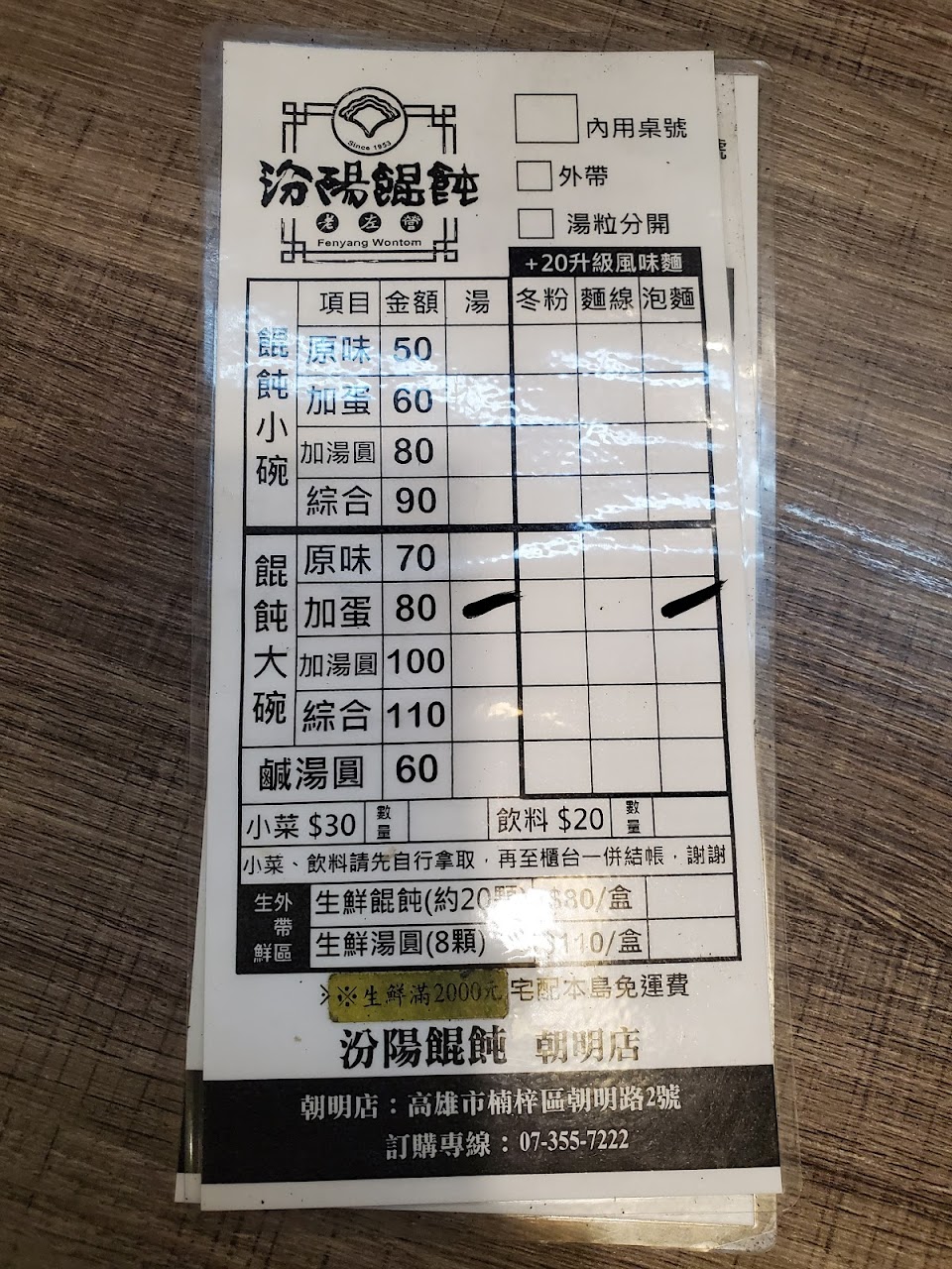結果一名在煮餛飩胖胖的阿姨竟然跟我說只有外帶可以分開,