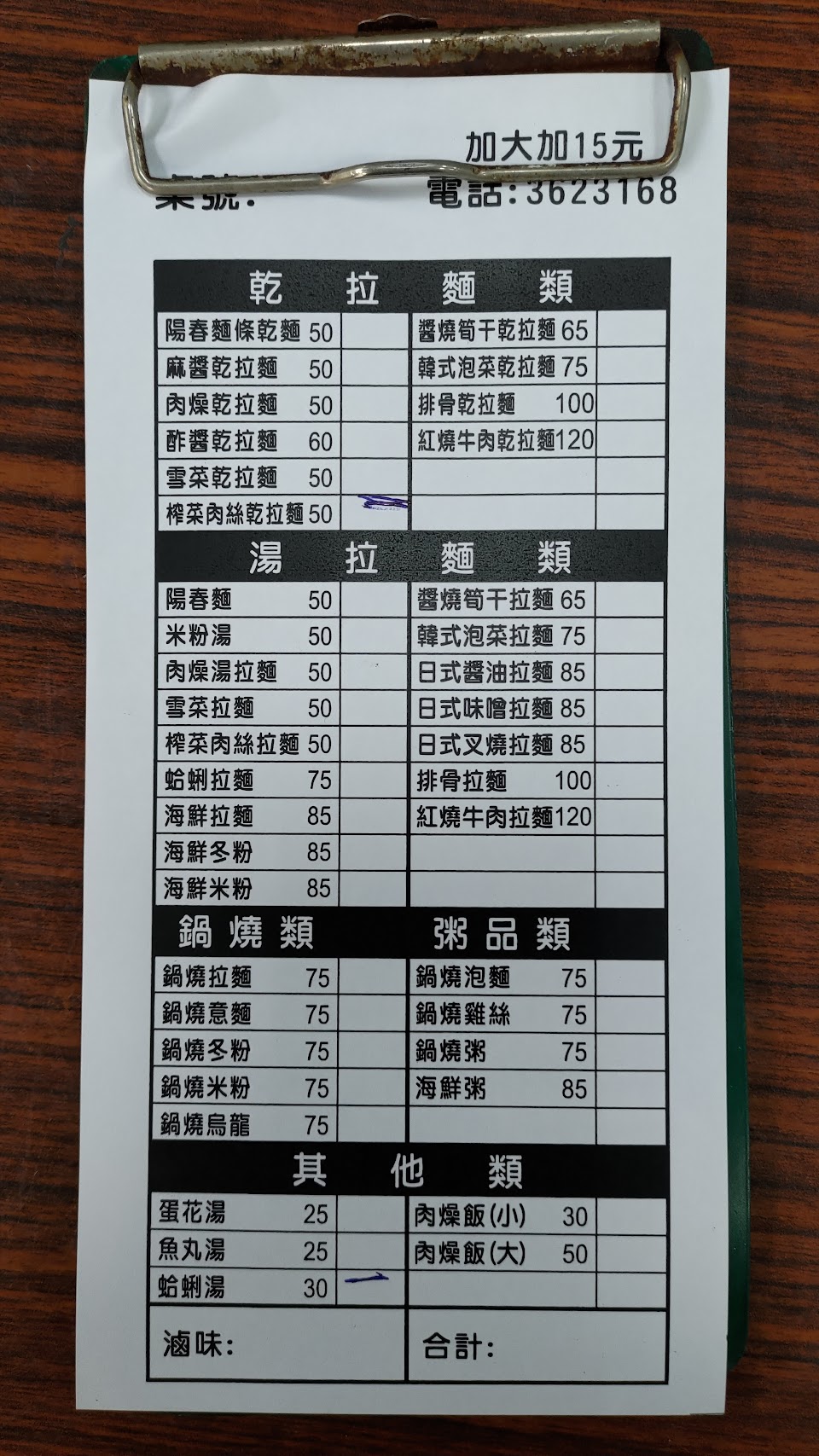 今天點了一碗「日式叉燒拉麵」,一碗75元,料和量都一般,價格算平價,味道不特別但也不致於差,如果可以讓顧客有驚喜的話會更好喔! 另外停車方面沒有特別的停車位,需停在公共的停車格。 老闆很親切,送餐時都面帶微笑,感覺這是一家以附近居民為主要客源的店家,然後內裝方面有些悶熱,如果可以將用餐區隔離開來,相信會有更棒的用餐體驗,另外現在的衛生意識高漲,店家目前的筷子依舊是用免洗筷,覺得可以換成塑膠筷或是鐵筷,這樣也可以順便照顧地球唷!希望下次光顧時可以有更好的用餐氛圍喔?