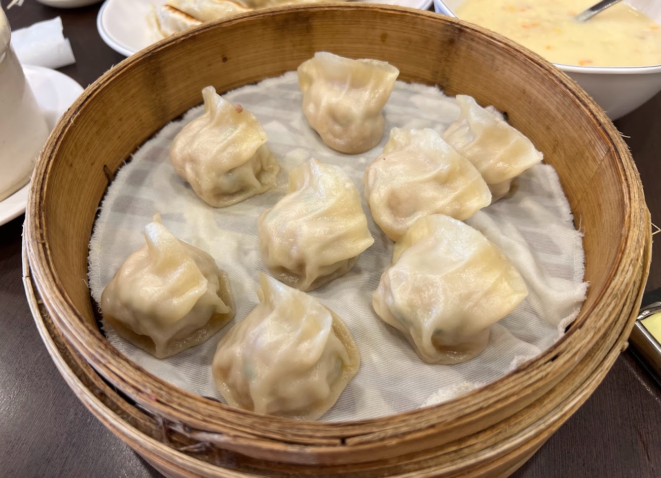 蒸餃也很好吃,不僅大顆還非常多汁,薑味也不明顯,怕薑味的人可以來吃看看;玉米濃湯也不是單純勾芡的那種,味道很像costco賣的?