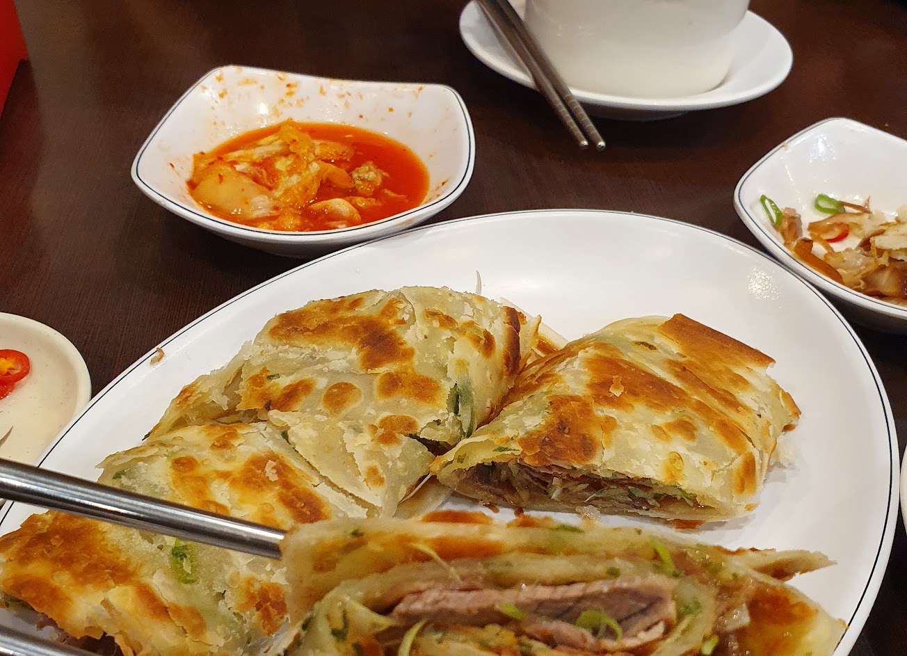 烙餅好吃,冷掉還是很脆。酸辣湯好喝大推。蒸餃普通,牛肉餡餅偏甜。