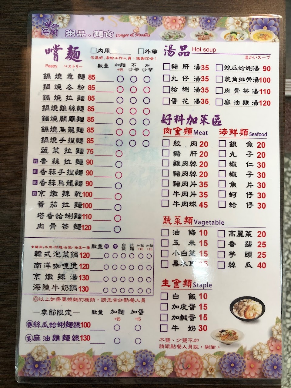 2024最新在地推薦餐廳的菜單_味廚粥品麵食的菜單、圖片