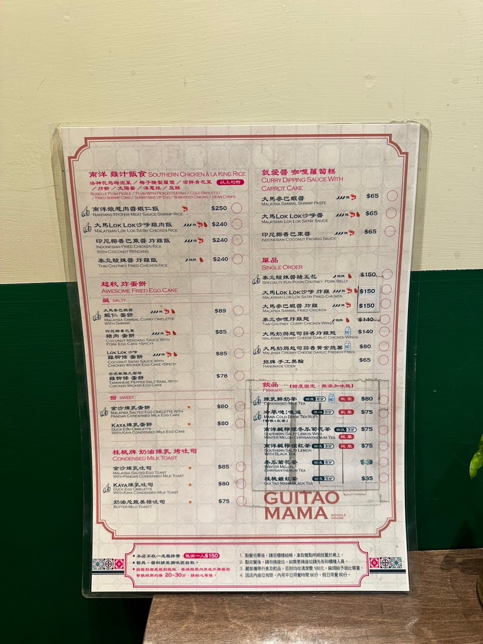 店內裝潢很復古,餐點的口味較重口味,,南洋味道鹹酸辣鮮還不錯,但飲料價格較貴。