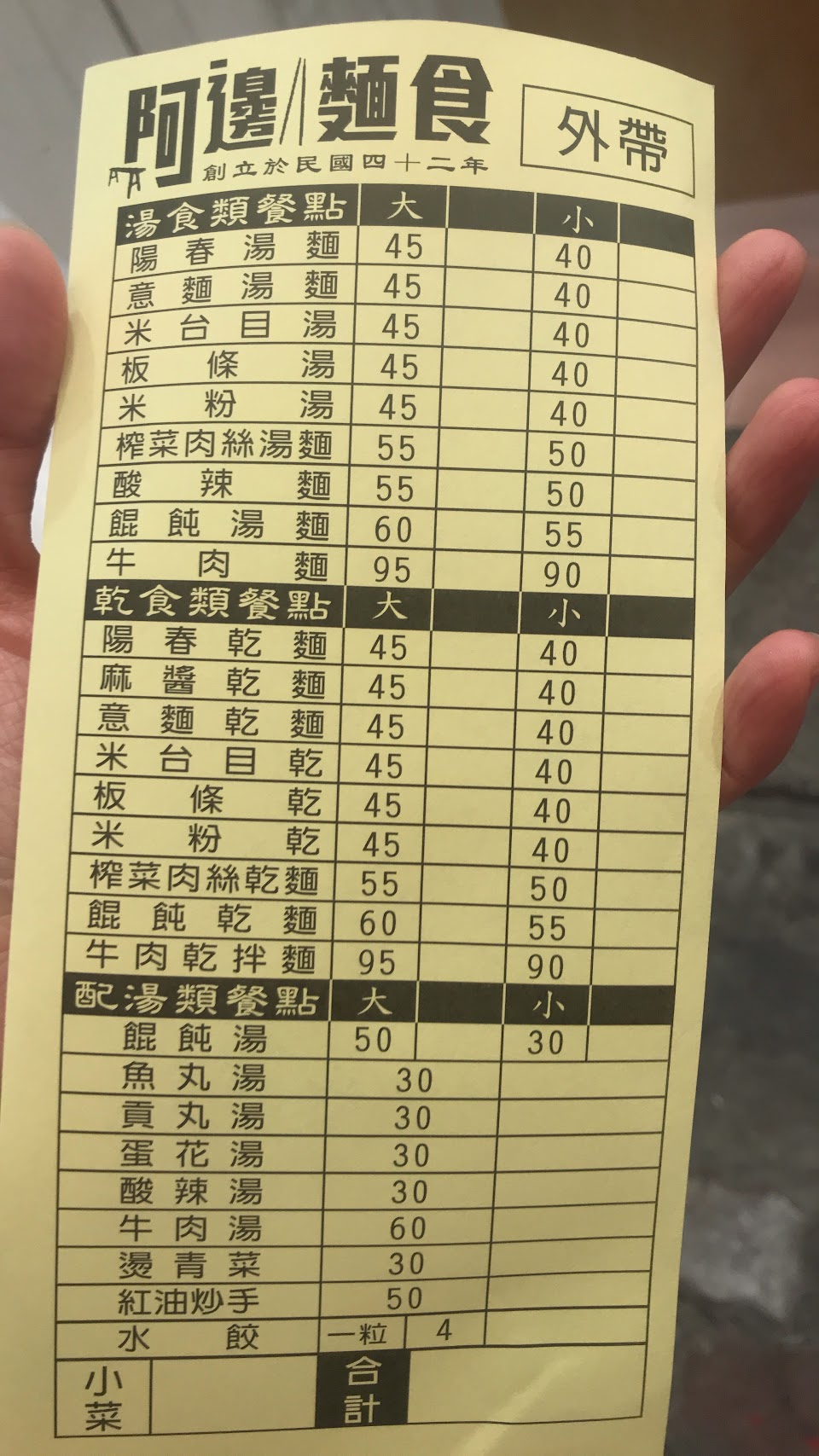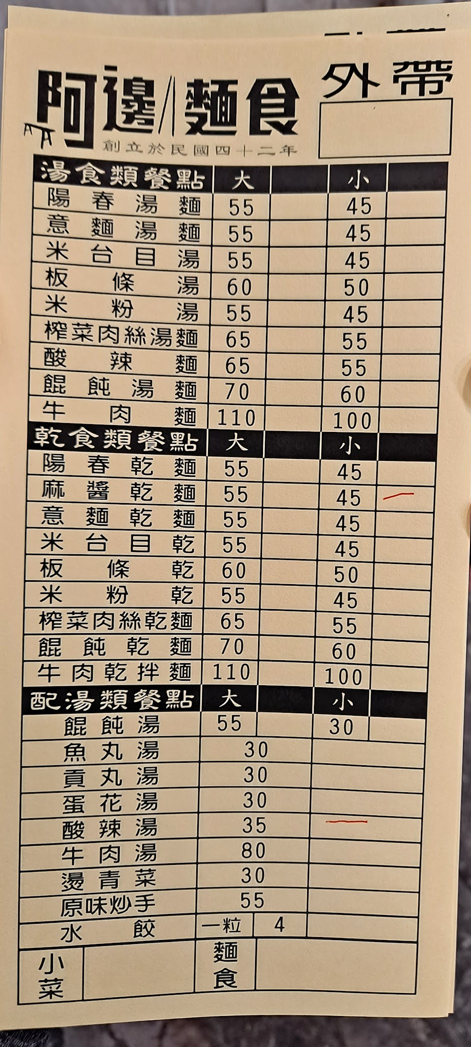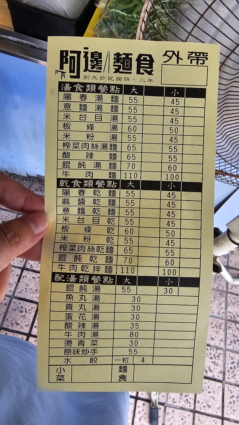 2024最新在地推薦餐廳的菜單_阿邊麵食的菜單、圖片