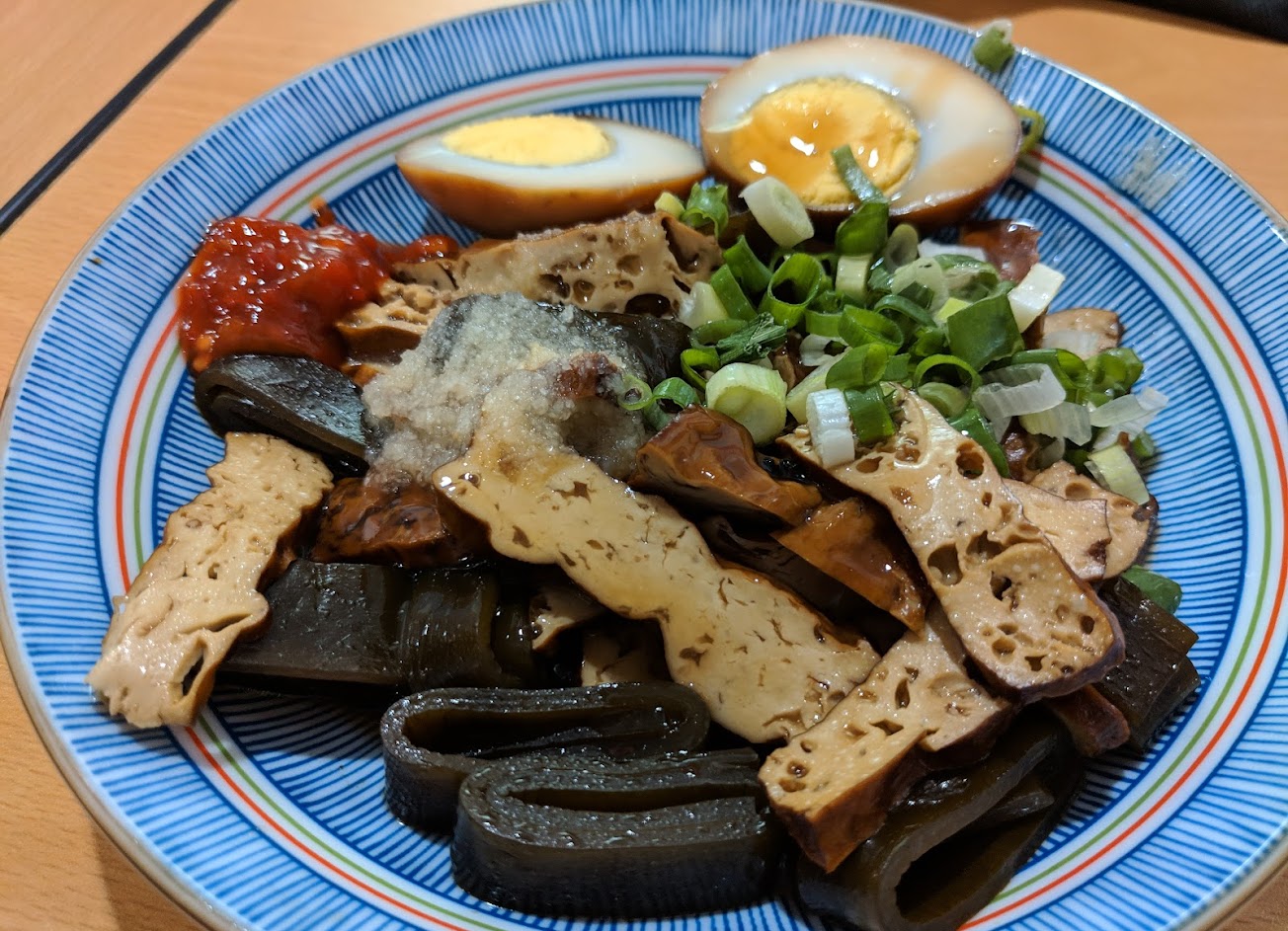 是一間在地經營超過60年的麵店,但整個裝潢卻不像一般老店的感覺 整間店走微微的日本風加台式傳統風,在店內用餐相當舒適,愉快的心情會讓食物加分,不過本身的食物口味已相當不錯,裝潢真的就是再加內心的愉悅度而已 除了麵食外,滷味的口味也不錯,可列為楠梓面食的口袋名單