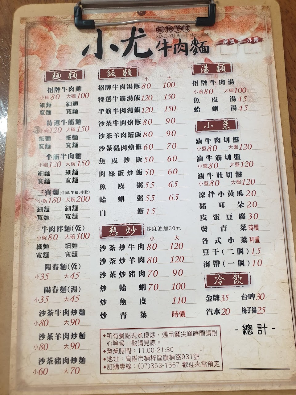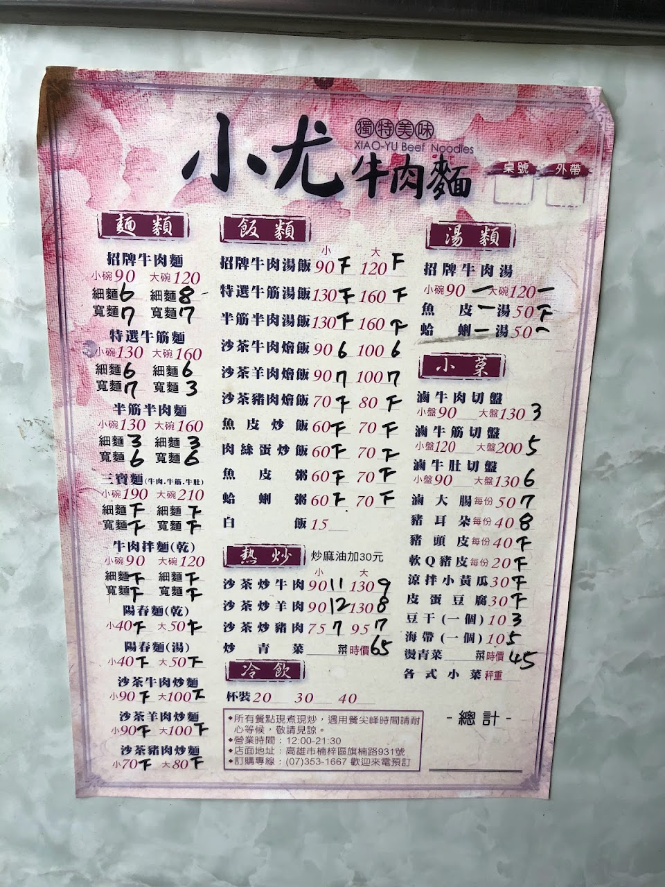 2024最新在地推薦餐廳的菜單_小尤牛肉麵的菜單、圖片