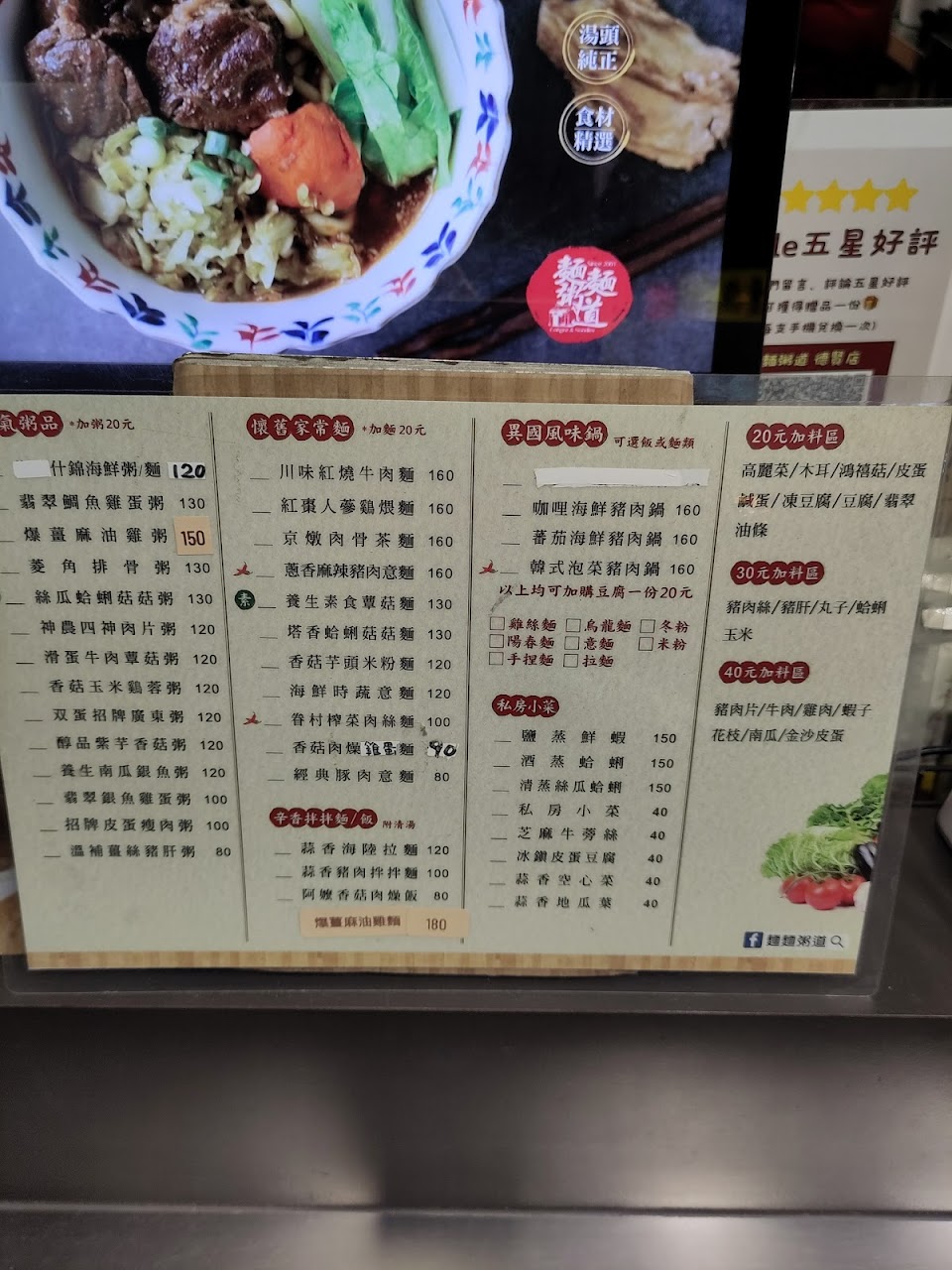 2024最新在地推薦餐廳的菜單_麵麵粥道-德賢店的菜單、圖片