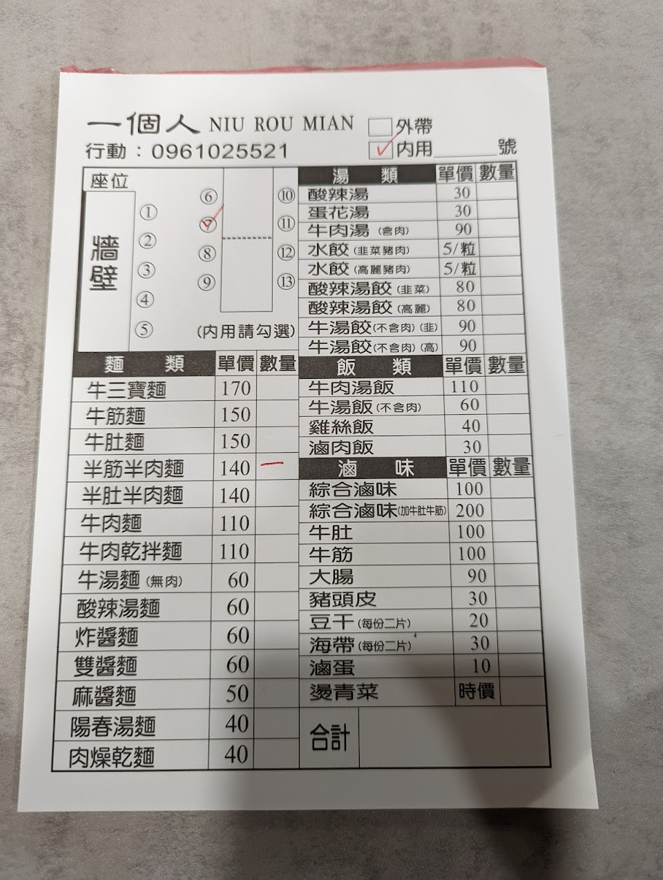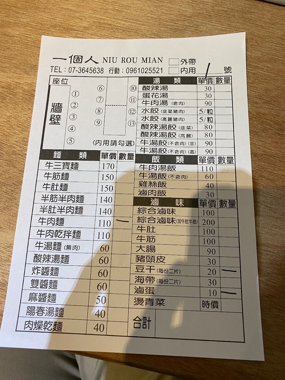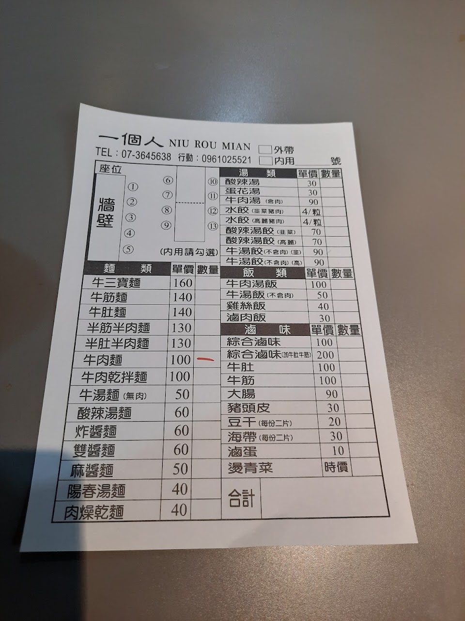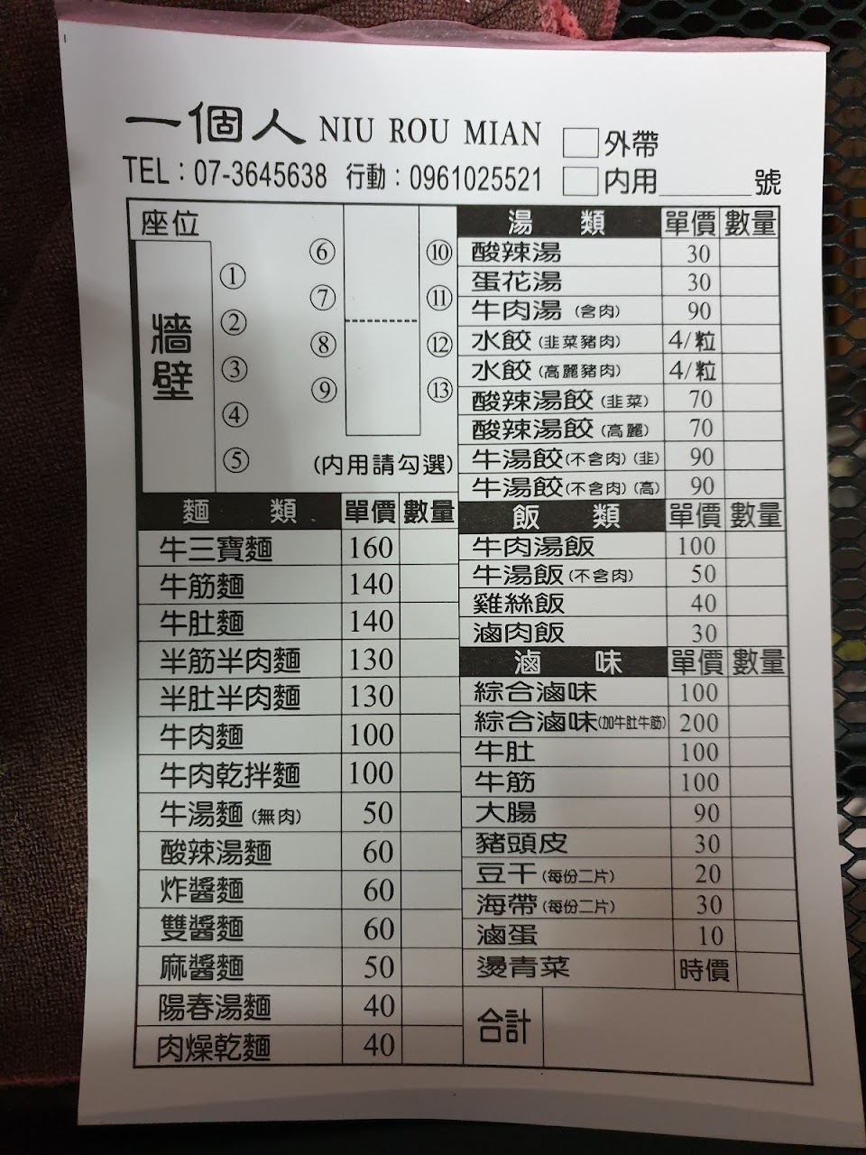 2024最新在地推薦餐廳的菜單_一個人 NIU ROU MIAN的菜單、圖片