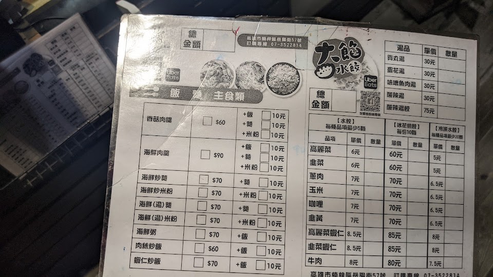 買了10顆蝦水餃,10顆蝦鍋貼,一份酸辣湯跟一份炒麵外帶,水餃10顆有8顆沒蝦子,都是高麗菜。鍋貼10顆有2顆沒蝦子,雖有打電話過去反應了,店家說下次退費,這樣的疏忽挺不好的。