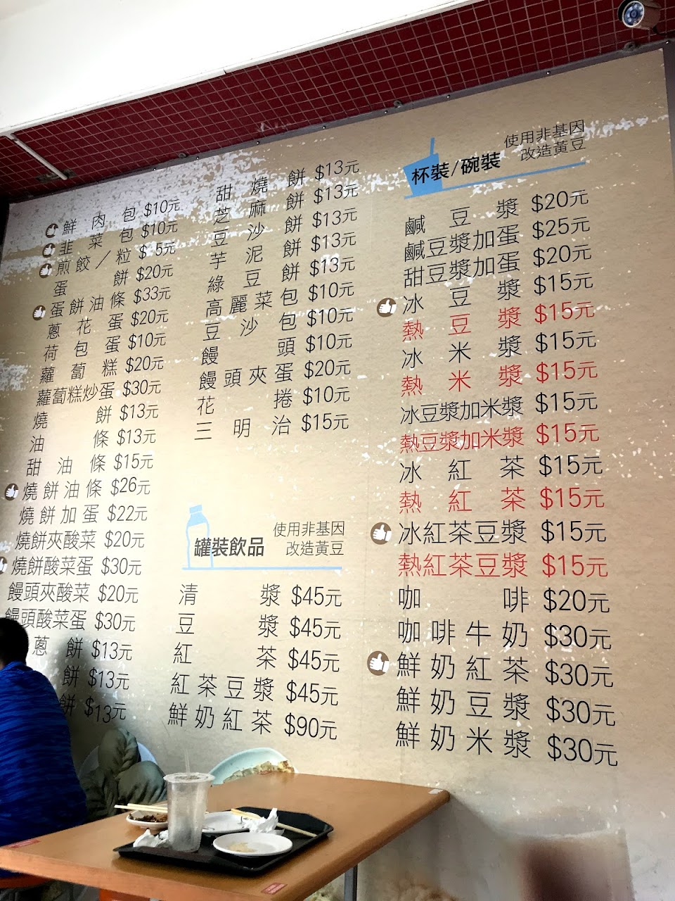 櫃檯專職在倒豆漿米漿的阿伯,他倒熱豆漿到碗裡,端到盤子上時,手指都會碰到豆漿,現場看到好幾次了!實在很噁心!