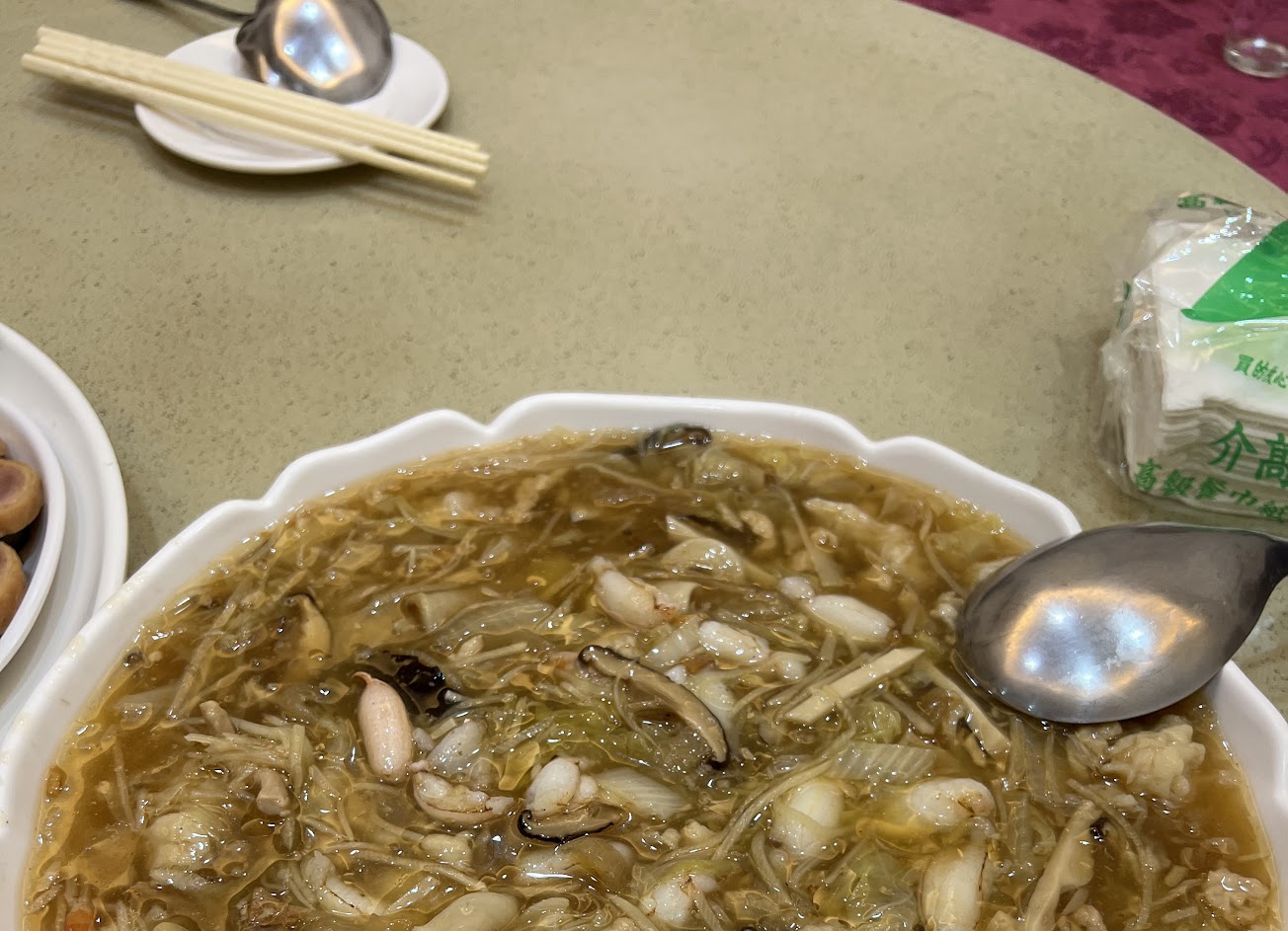 食物好吃,石斑魚非常大隻,腳庫軟爛好入口,海鮮羹美味,扇貝用炸的過於平淡無味,提前訂位,老闆給我們包廂,大張的桌子能讓我們擺下13張一般的大人椅也不顯的擁擠(四個兒童),這個大推。