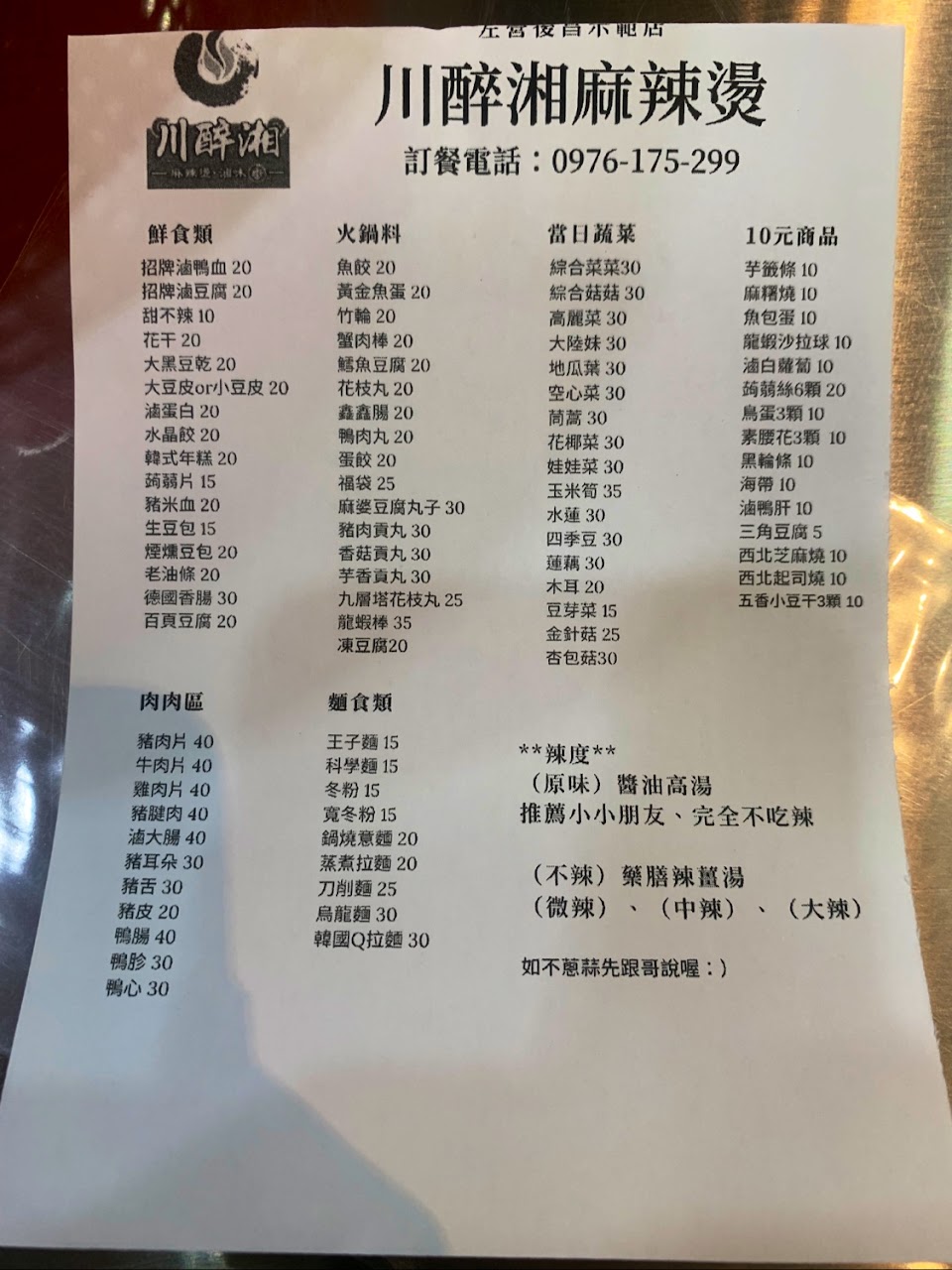 2024最新在地推薦餐廳的菜單_川醉湘麻辣燙-楠梓後昌店(川霸子食品企業出品)的菜單、圖片