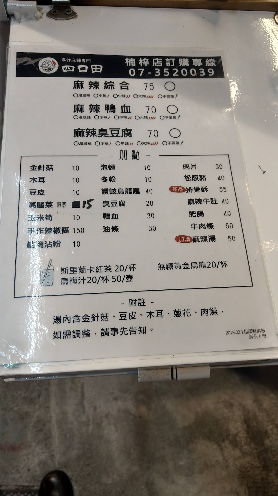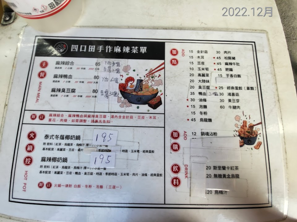 2024最新在地推薦餐廳的菜單_四口田手作麻辣專門 楠梓店的菜單、圖片