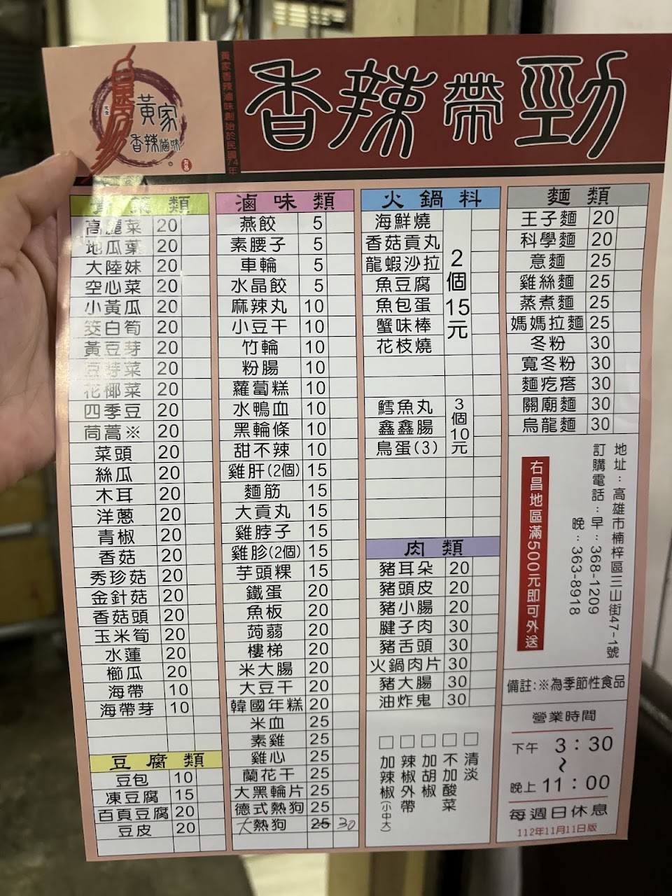 2024最新在地推薦餐廳的菜單_右昌黃家香辣滷味的菜單、圖片