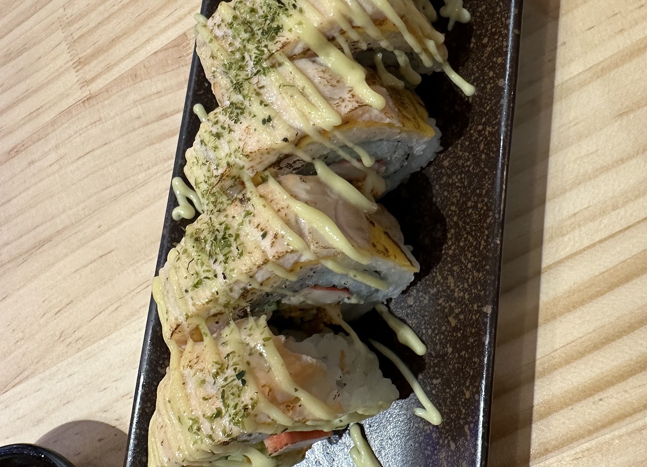 飯粒黏度很夠,沾了醬油都不會分體,不過炙燒的飯有一小部分會烤焦。綜合生魚片有新鮮,就算是鮭魚捲也是一口也塞得下,平日晚上去翻桌率快