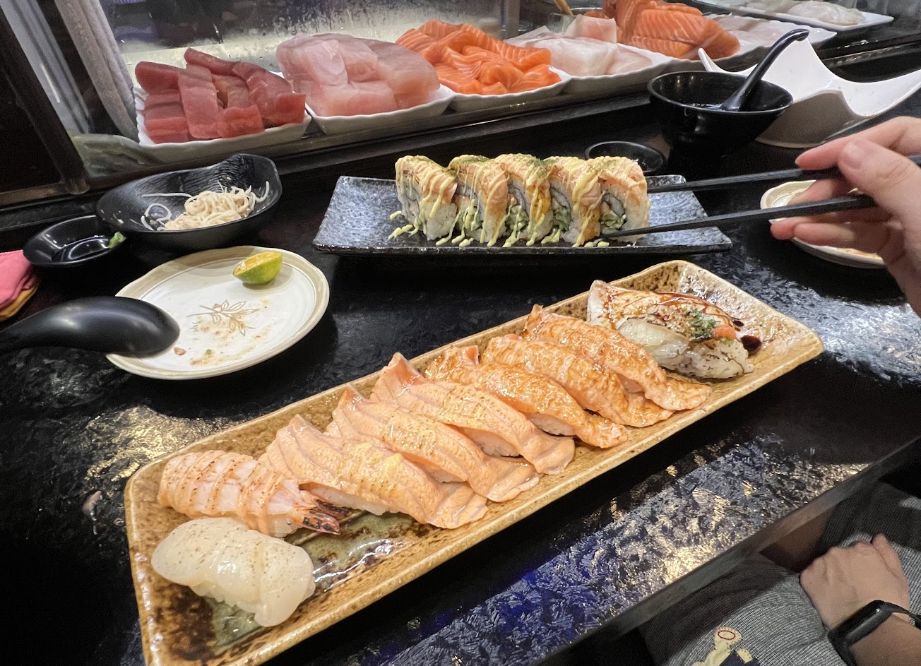 焦糖鮭魚、炙燒鮭魚起司捲好吃