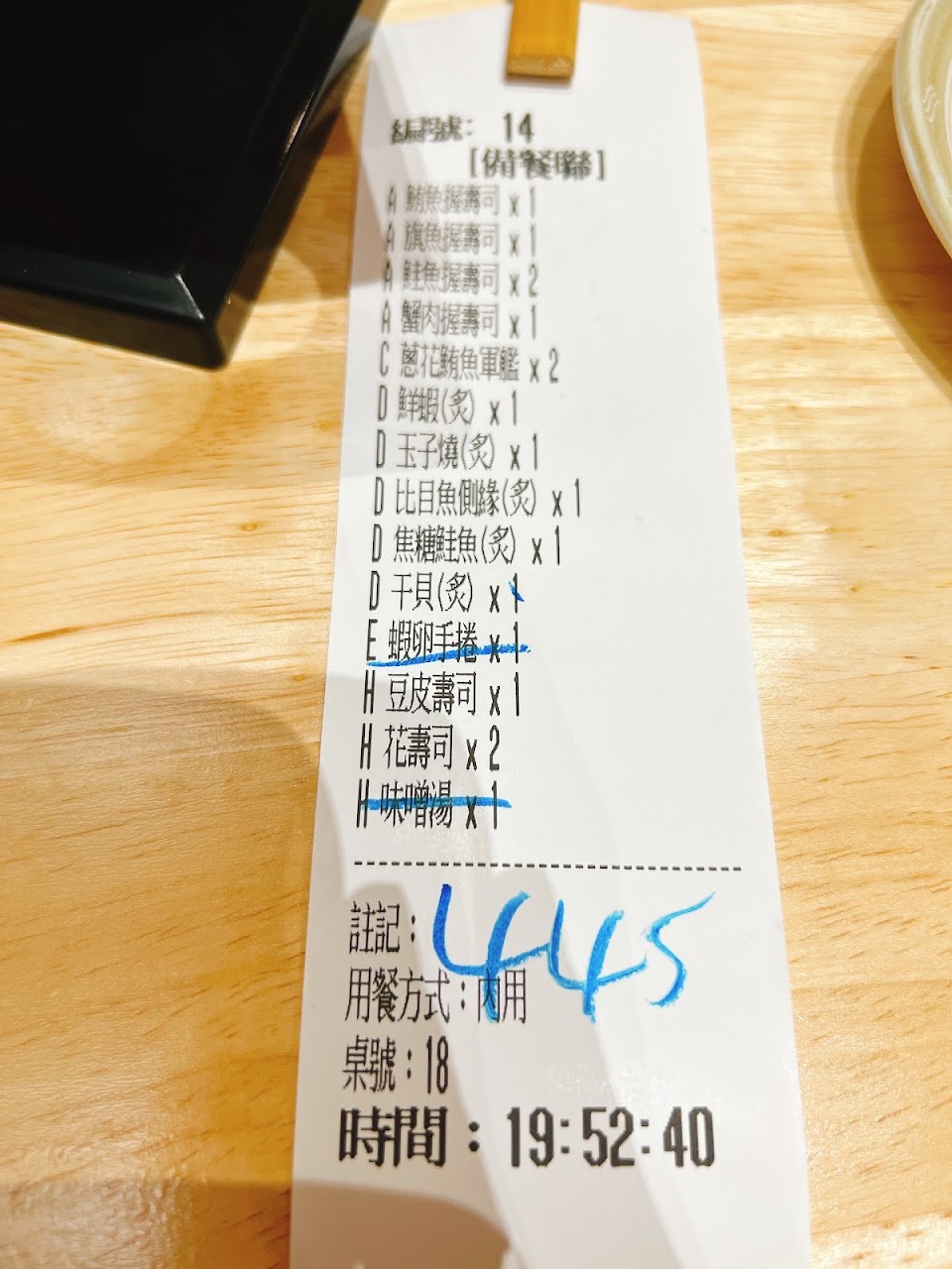 每道壽司份量都偏小,沒提供水,要付現沒開發票。總體CP值不高。