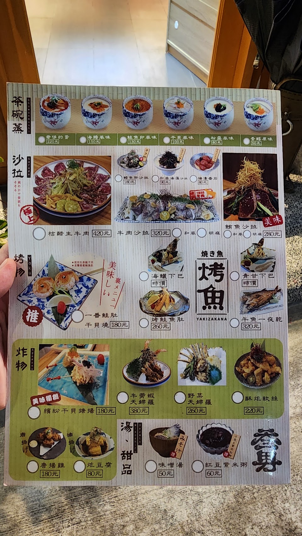 要看牆壁上的推薦,但是還是會建議多爬文在點,畢竟特殊菜單的單價也不低