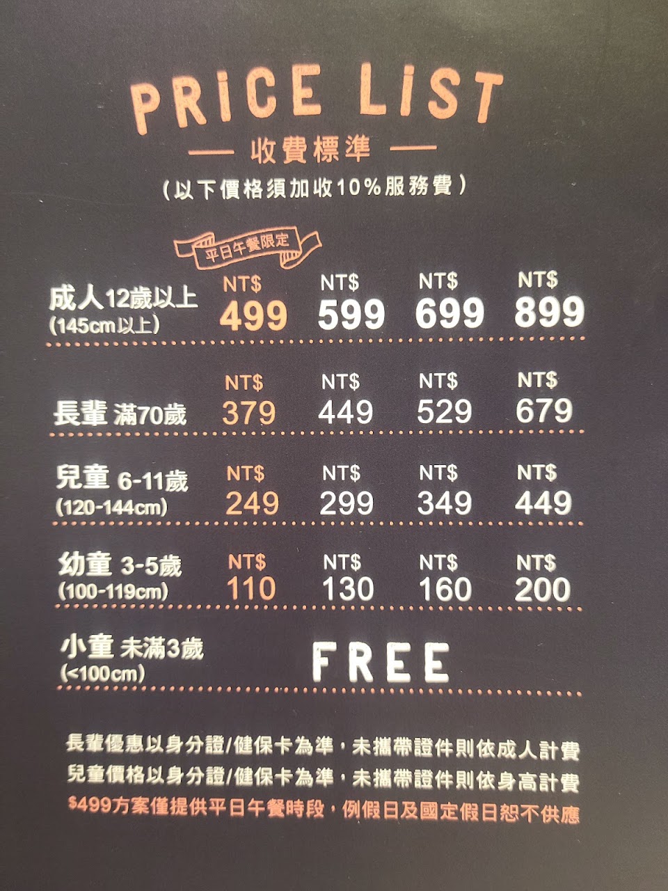 價格有三種選擇,但都需要加一成服務費,最好來之前先訂位