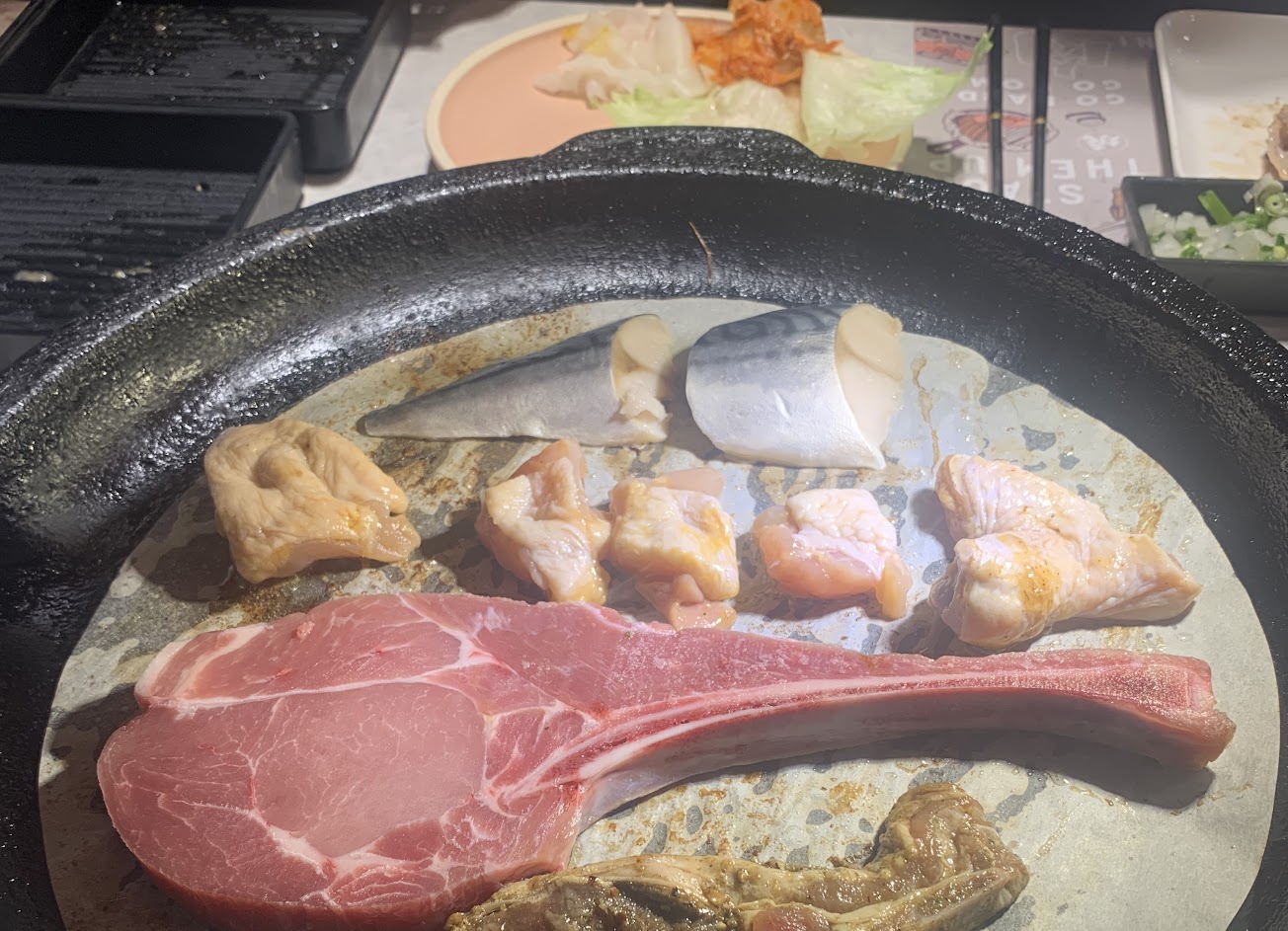 就是烤了一堆肉 味道聞起來超重 心裡想說等等回家身上一定都是烤肉味 結果很意外的身上並沒有什麼味道殘留!早上噴的香水味道還在 真的很意外?