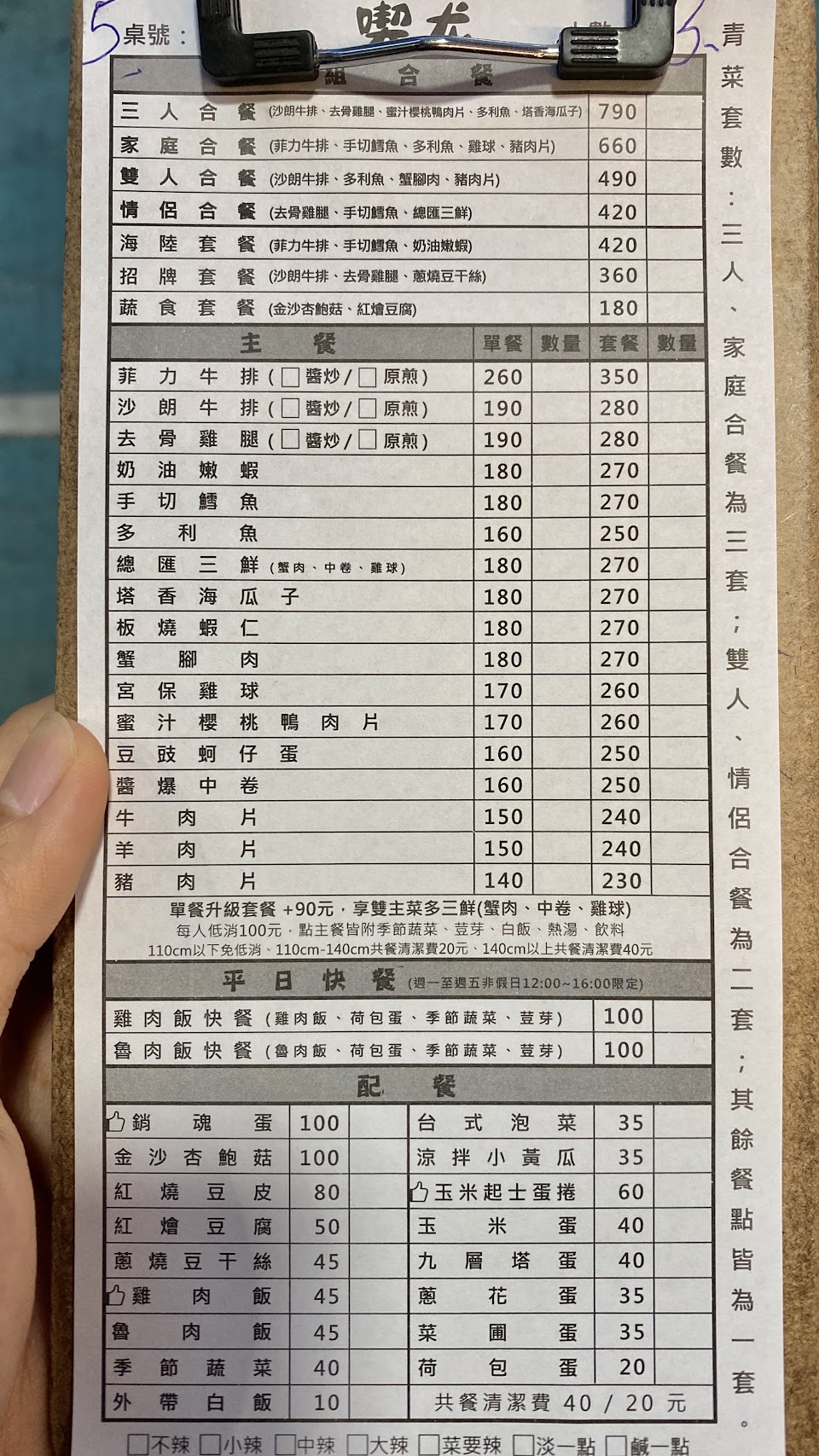 防疫期間雖然有開放內用,用餐完有點擔心。廚師,桌上抹布重覆使用多次,擦了炒台更噁心是又拿來擦炒莱煎匙,髒到不行,也不洗或換一條乾淨的。滑手機雙手也不消毒或清潔,直接抓菜,看了都昏了。 內場人員素質有待加強,我點了雙人套餐及羊肉、葱花蛋。結果漏了2樣沒來,提醒了廚師,廚師還不高興,似乎好像我在騙人。 還有防疫期間,客人離開時,桌上及隔板都未確時用酒精消毒……