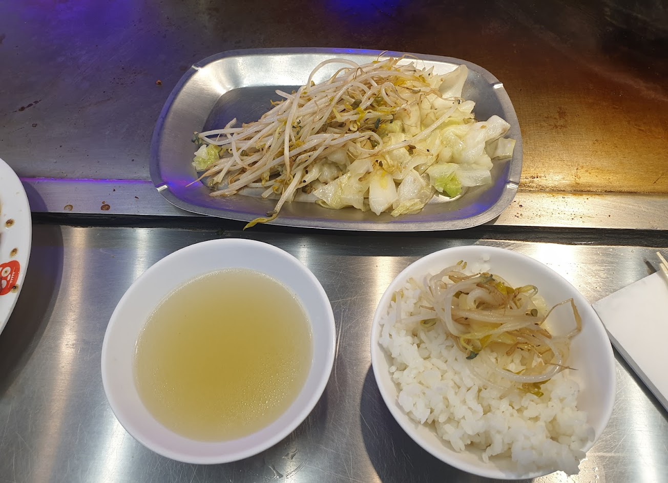 有附飲料、白飯、湯,環境上來說相對附近夜市的店家算清潔得比較好很多,google評論五顆星有送一盤豆干。