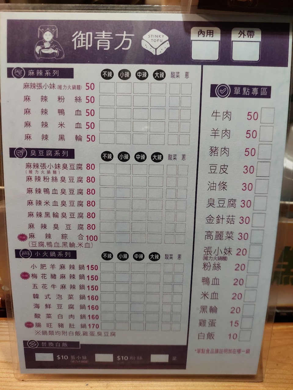2024最新在地推薦餐廳的菜單_御青方 麻辣臭豆腐 高雄楠梓店的菜單、圖片