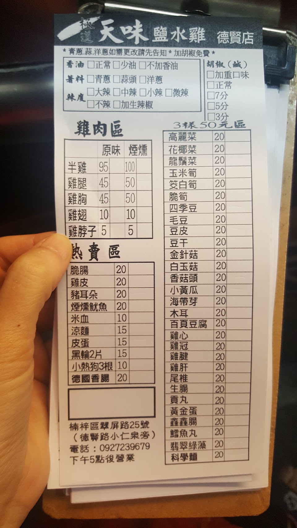 在點餐單上註明想要的調味方式