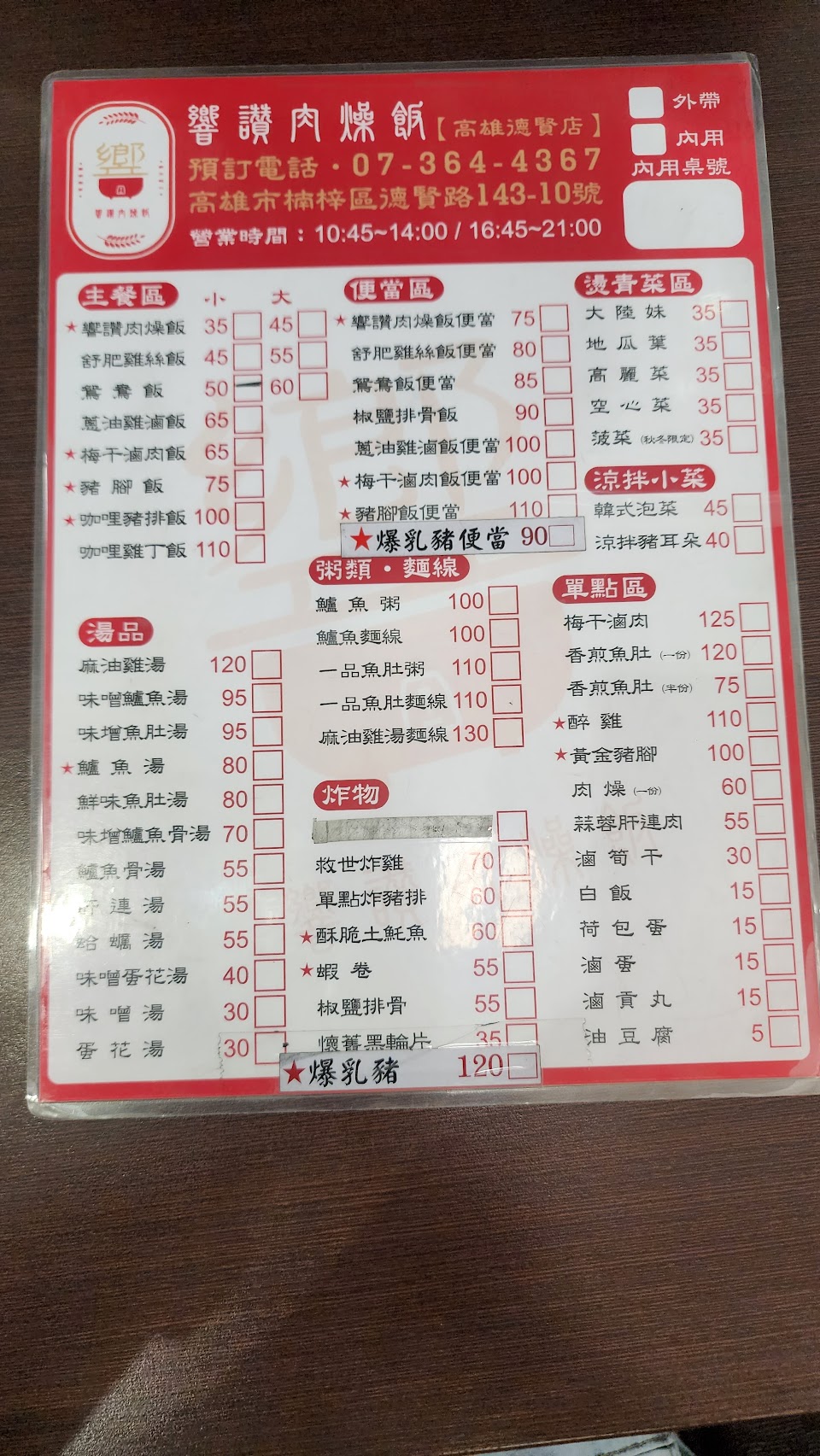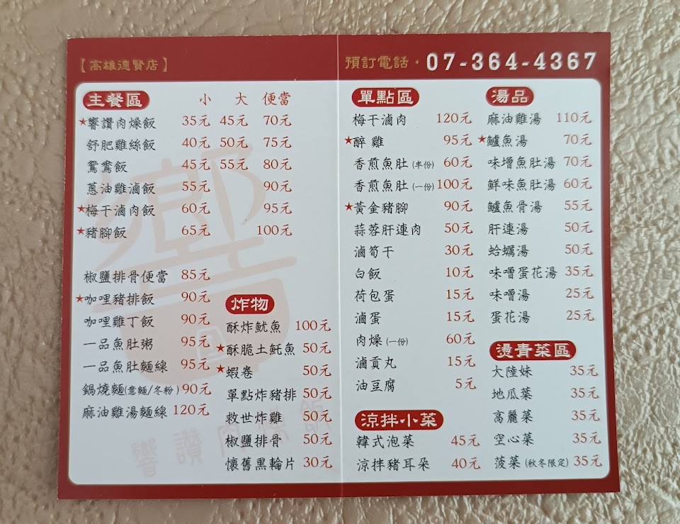 2024最新在地推薦餐廳的菜單_響讚肉燥飯|楠梓店的菜單、圖片