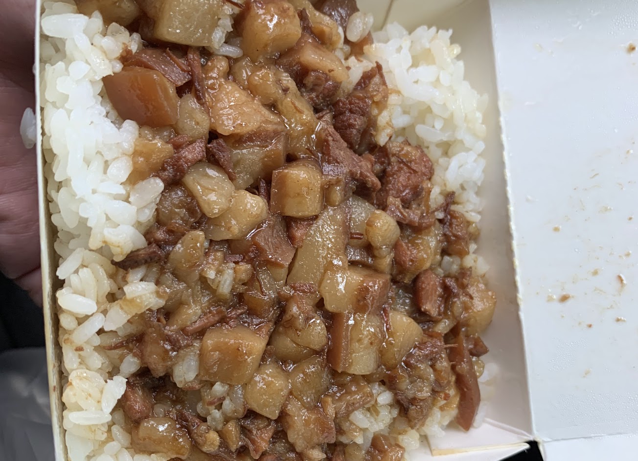 肉燥飯偏油且不夠香也不夠鹹、肥肉偏多