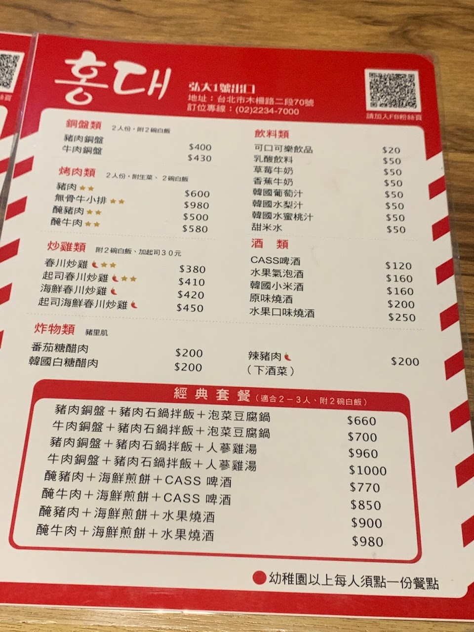 2024最新在地推薦餐廳的菜單_弘大一號出口的菜單、圖片