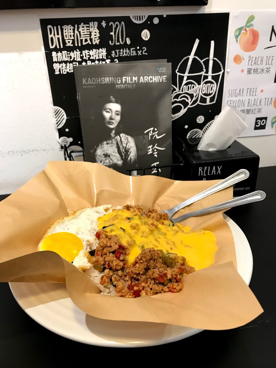 點了最招牌的「打拋豬肉飯」內含一個荷包蛋及一些起司 調味道不道地我不知道 但很好吃 整體是偏辣的(怕辣的只能點滑蛋系列)份量很足 食量不大的女孩子恐怕是會吃不完 飯量真的是一個男孩子也能吃很飽的程度!