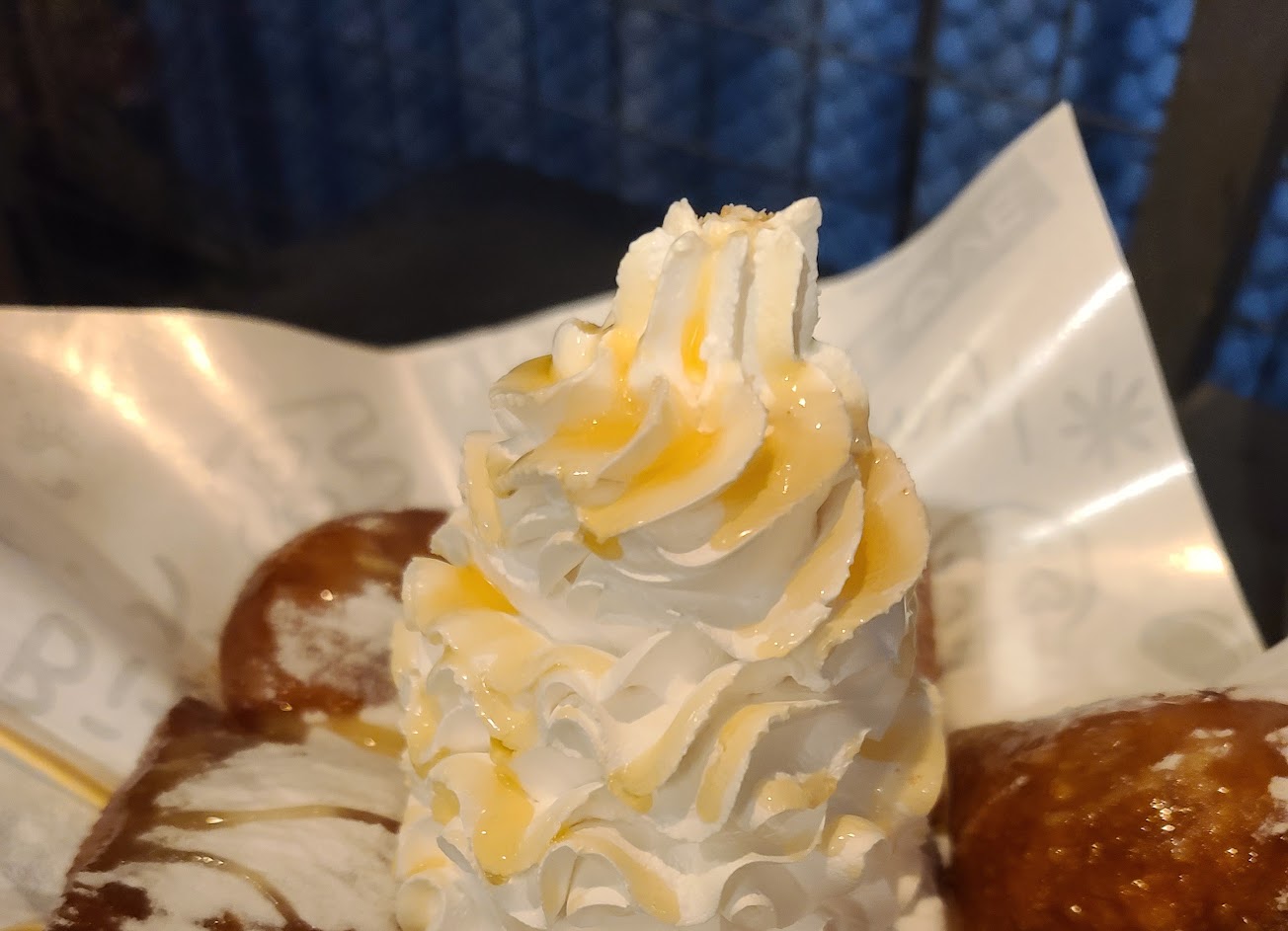 第一次去的時候點了烘蛋的! 很好吃(只是感覺要再淋一點醬) 所以這次就點了打拋豬飯(有醬了!!) 正常發揮的好吃! 和朋友點了煉乳甜甜圈~~ 很好吃喔 大家有機會可以試看看他們的甜甜圈!~~~