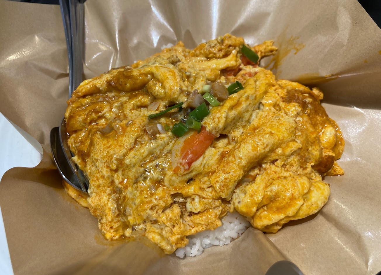米飯香Q的口感配上美味滑嫩香氣濃郁的蛋與蔥及蟹肉的搭配真的好適合,超級無敵下飯的美味,店員貼心的跟顧客說吃起來可能會有稍許碎碎的小殼,但可以食用不要擔心,本店推出這新餐點很受食客的喜愛,賣的挺好的!不會太油膩,擺盤上用餐紙讓食物跟加的顯得特別!顏色配起給元元相當的驚喜,好吃!